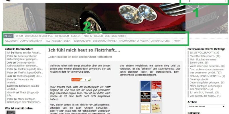 Ich habe mal 2 Screenshots von meinem aktuell genutzen ‘Atahualpa’ WP-Theme und dem ‘Darwin’ BP-Theme gemacht, damit die kleinen aber wichtigen Unterschiede erkennbar sind.