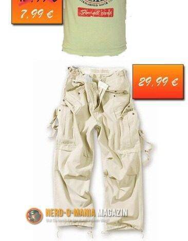 Die Army-Hose im Cargo-Style gab’s im Internet in einem Army-Shop, da mein sonst standardmässig aufgesuchter Laden nur schwarze Hosen als “frische Sommerfarbe” führte. Bei 30° Grad Celsius eine schwarze Hose? Öhh, ja, kann man machen – muss aber nicht. Es sei denn man hat vor eine transportable Saunasitzung mit Wegschmelzgarantie zu zelebrieren – Kreislaufzusammenbruch inklusive..