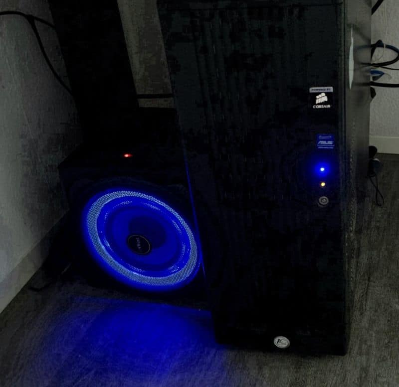 Dieser Subwoofer passt auch optisch gut zu meinem Server – wie Rambo sagen würde: „es leuchtet blau“ – denn rund um den Lautsprecher sind blaue LEDs angeordnet, die je nach Lautsprecher-Hub stärker oder schwächer leuchten (diesen Effekt kann man aber auch ausschalten – so ein Mäusekino kann auch mal schnell nerven).