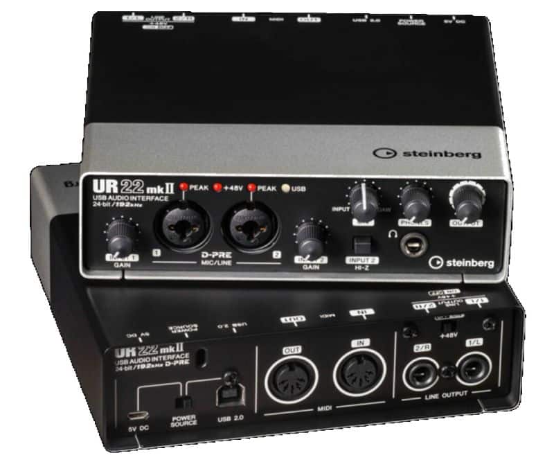 (Bild rechts: leider ist es für das NT1-Mikro unerlässlich einen Vorverstärker zwischen zu schalten, der die 58 Volt Phantomspannung liefert, ohne die dieses Mikro leider keine Mukkis für die Aufnahme hat. Dieses Interface von Steinberg (nun YAMAHA) kostete auch mal eben 200 €. Sollte man im Hinterkopf haben, wenn man solch ein Mikro kauft.)