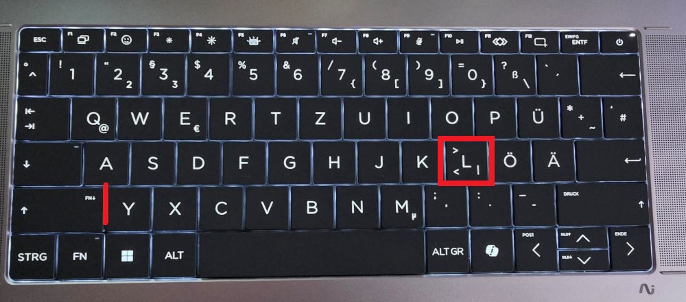 Auf jeder „normalen“ Tastatur ist dieses Zeichen auf der linken Seite direkt neben der Umschalt-Taste – hier sind die Sonderzeichen „<„, „>“ und „|“ auf der L Taste angebracht und lassen sich von dort nur umständlich mittels gedrückter ALT und FN Taste einfügen oder über die Krücke Zeichentabelle oder am besten mittels einer extern angeschlosssener Standard-Tastatur eingeben. Das finde ich schon echt blöd und hält echt auf.